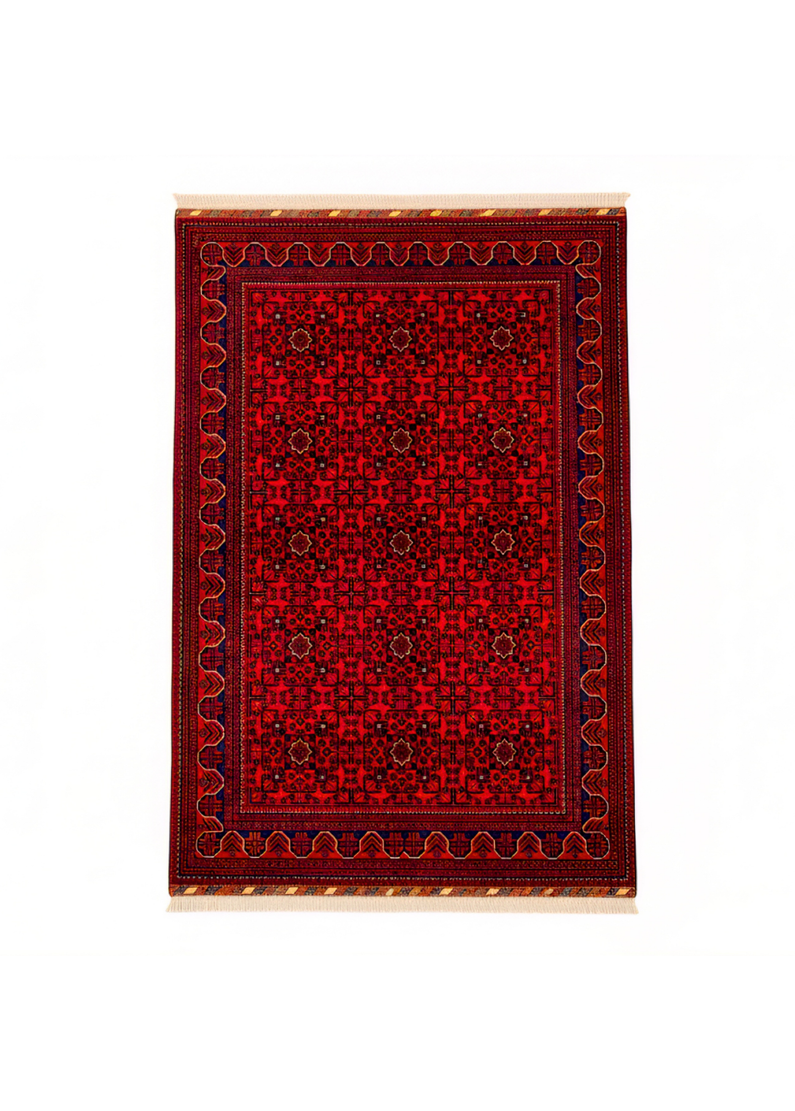 Geleneksel tezgâhlarda, %100 yün ipliklerle %100 el dokuması. Sanat, zanaat ve ruhun sentezi. Üretim yeri: Afganistan